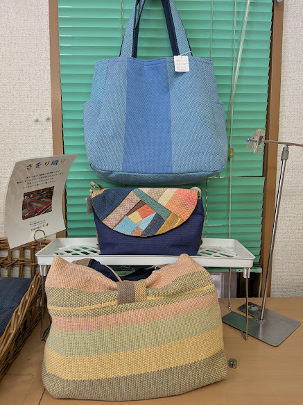利用者さんが織り上げた布を縫って、バッグや雑貨などステキな製品に仕上げていきます。